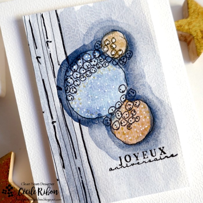 Je suis un peu en retard pour vous présenter le challenge Freshly Made Setches de cette semaine, qui met à l’honneur le tout premier sketch de Michelle L en tant que membre de la Design Team. Sa composition de cercles m’a inspiré un motif abstrait à l’aquarelle. Pas de matrices ni de tampons, juste de l’aquarelle, de l’encre de chine et le plaisir de jouer librement avec les couleurs et les formes.