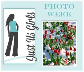 Here is my take on the current challenge over at Just Us girls. It’s Photo Week and Sue has a gorgeous floral image for us to play with. I do love tulips, they are such elegante flowers. My favorites ones are yellow tulips. Hence, 2 yellow tulips are the focal image of my card. I chose to die cut the flowers out of black cardstock and to splatter some yellow ink to represent petals’ color …