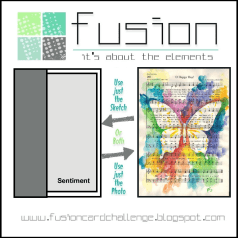 Here is my take on the current FUSION challenge. I made a FUSION, I used the sketch for the lay-out and got inspired by the photo for the color palette, and the « musical butterfly » theme.