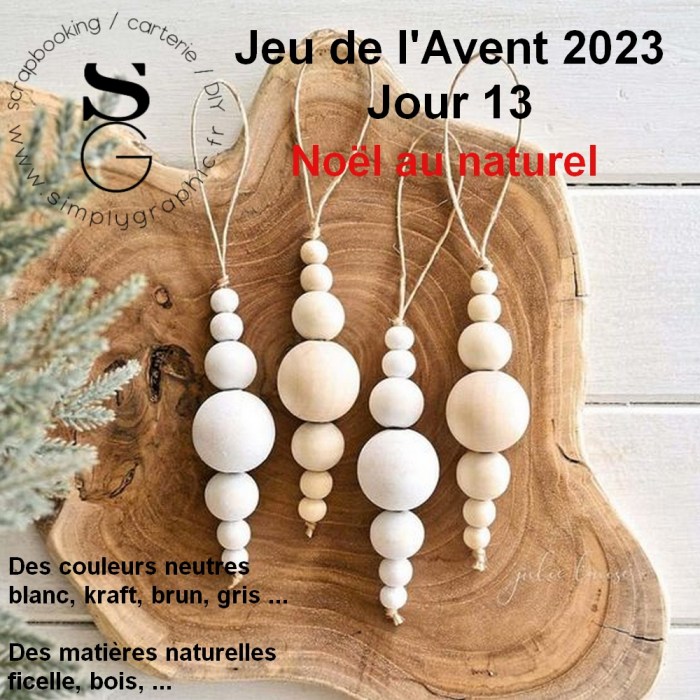 C’est parti pour la seconde moitié du grand jeu de l’Avent organisé sur le Groupe Simply Graphic (groupe Facebook). Pour ce 13ème défi, nous vous proposons créer sur le thème « Noël naturel » en utilisant :