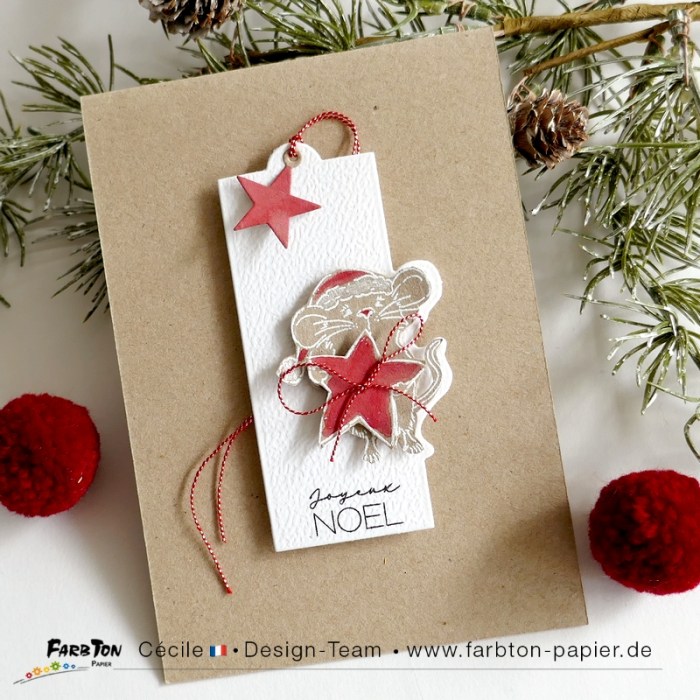 « Lui » est une adorable souris, provenant d’un ensemble de tampons et d’un set de matrices de coupe Farbton Papier, conçus en collaboration avec @vanideen Ces divers sets permettent de réaliser de jolies étiquettes pleines de tendresse pour diverses occasions. « Lui » est en effet disponible en plusieurs versions.