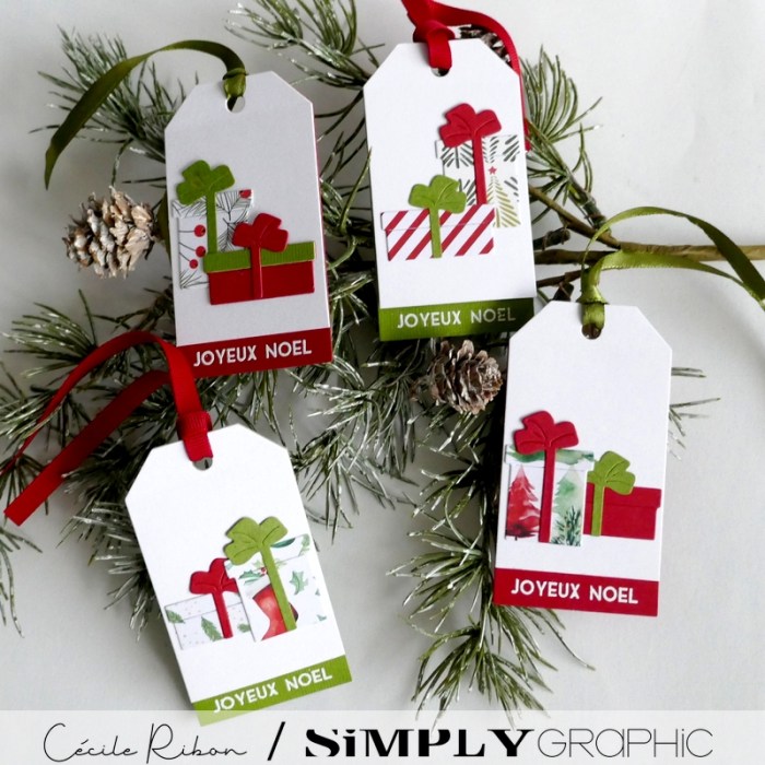 La surprise de ce jour 4, est un ensemble de matrices de coupe permettant de créer de jolis petits cadeaux superbement ornés de gros nœuds.