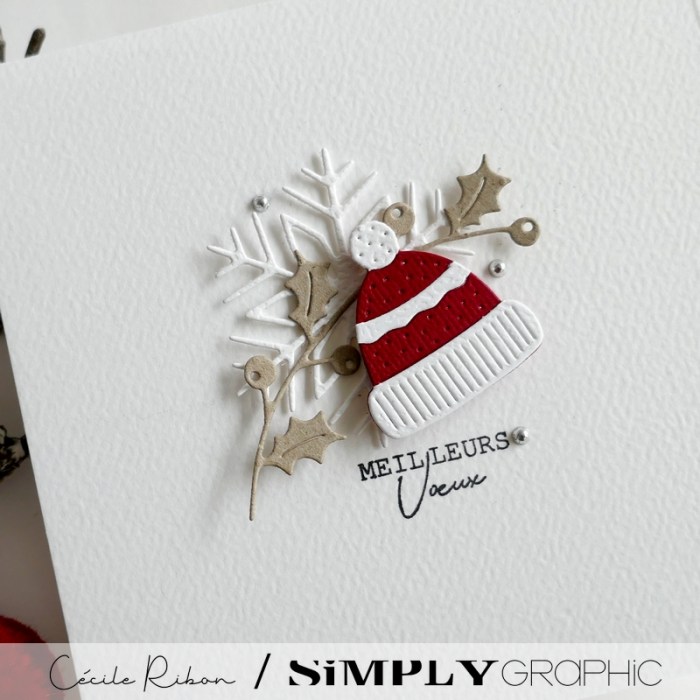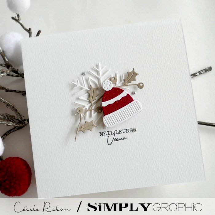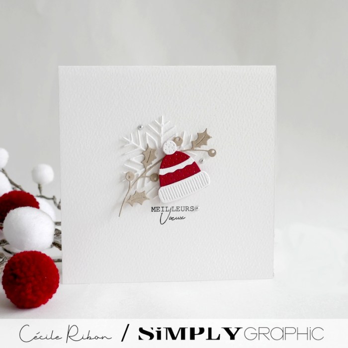 Pour mettre en scène ce joli bonnet, j’ai opté pour une carte de vœux toute simple à l’ambiance très hivernale.