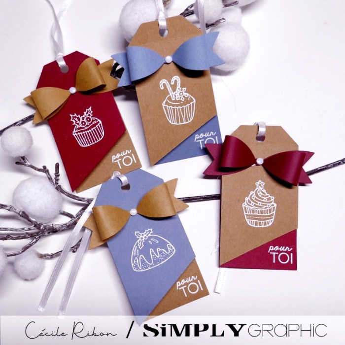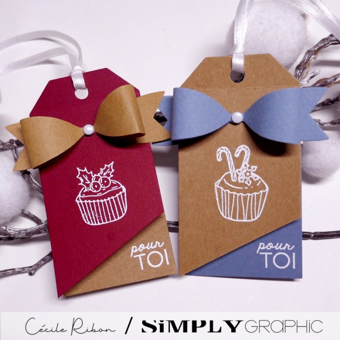 Je suis allée droit à l’essentiel et j’ai opté pour un ensemble d’étiquettes toute simples mais très gourmandes avec ces jolis cupcakes de Noël (Une planche de tampons de la collection Noël 2024)