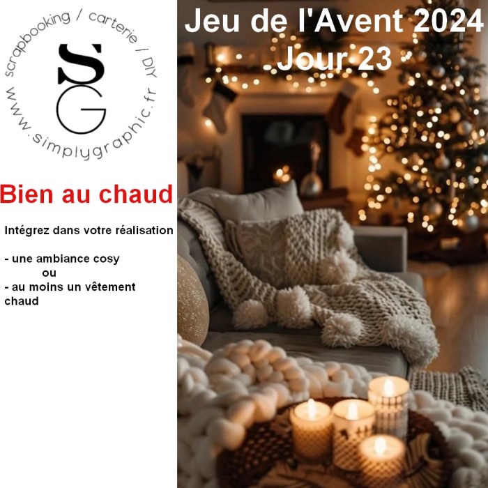 Voici le 24ème et dernier défi de la quatrième édition du grand jeu de l’Avent organisé sur le Groupe Simply Graphic (groupe Facebook). Du 1er au 24 décembre je vous ai proposé un défi par jour avec de nombreuses surprises à gagner tout au long du jeu … C’est le dernier défi mais les participations à tous les défis proposés restent ouvertes jusqu’au 2 janvier.