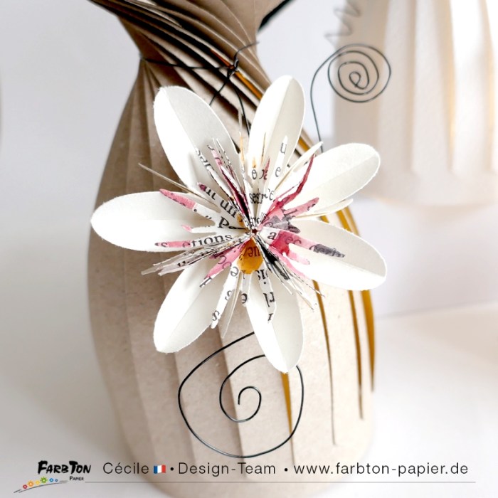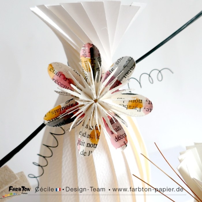 Aujourd’hui toute la DT de Farbton Papier met à l’honneur un produit arrivé récemment en boutique. Il s’agit d’une perforatrice permettant de réaliser rapidement et facilement de très jolies fleurs par pliage et assemblage des pétales.