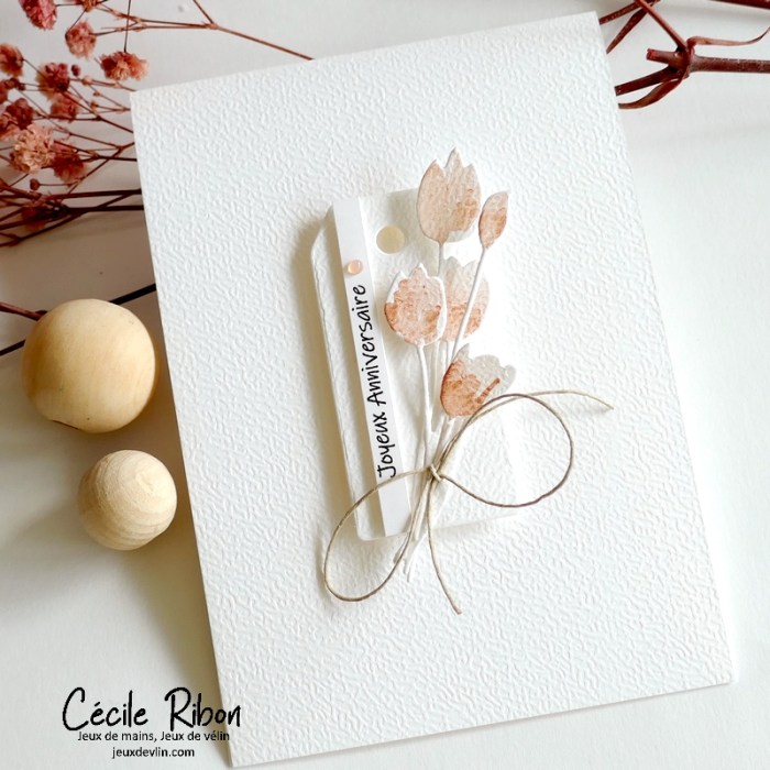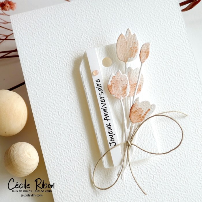 Je partage aujourd’hui une carte d’anniversaire résolument printanière avec un bouquet composé des premières tulipes de l’année 😉 Bon d’accord, celles-ci sont en papier mais bientôt nous pourrons offrir de vraies fleurs de printemps.