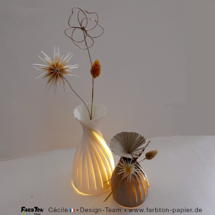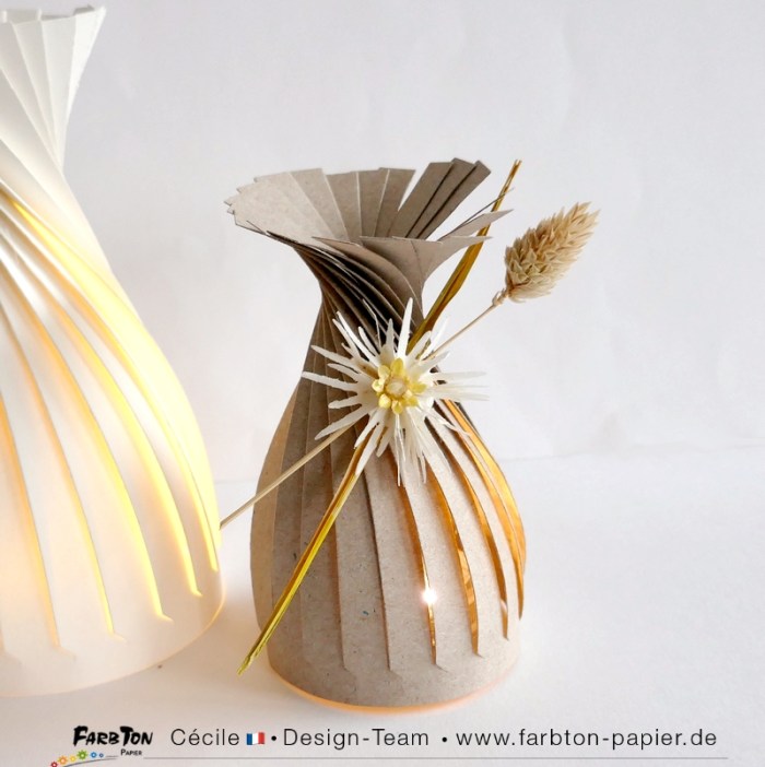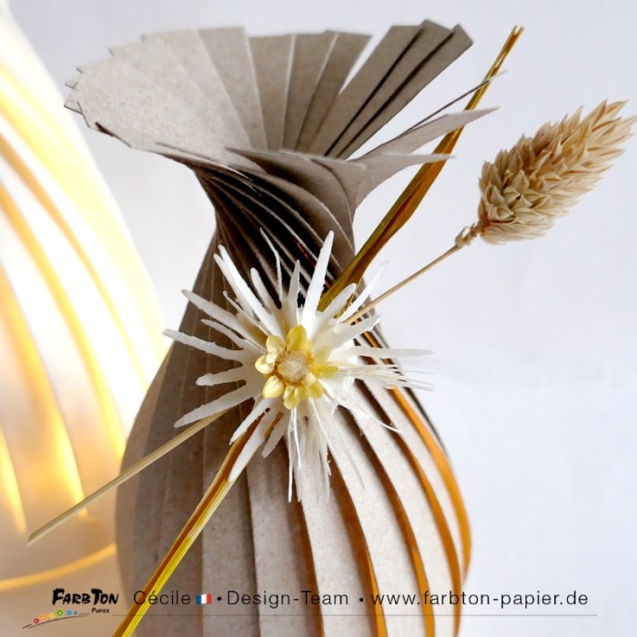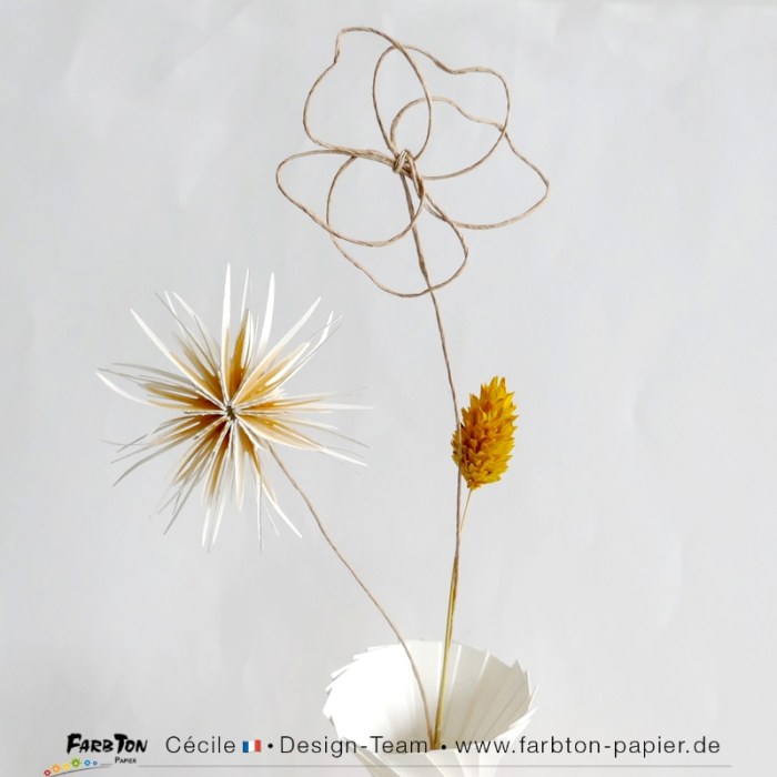 J’ai décoré les structures avec des fleurs séchées, des fleurs en papier (également des matrices de coupe Farbton Papier) et même une fleur façonnée avec de la ficelle armée pour le grand photophore (La liste des produits utilisés est sous les photos)