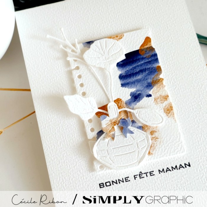 Cette fois j’ai pris un peu d’avance sur le calendrier et j’ai réalisée une carte pour la fête des mères. Il faut dire que ce set de matrices de coupe « Flacons de parfum » s’y prête à merveille. D’ailleurs j’en ai d’autres en préparation et même pour nos papas, il n’y a pas de raison.