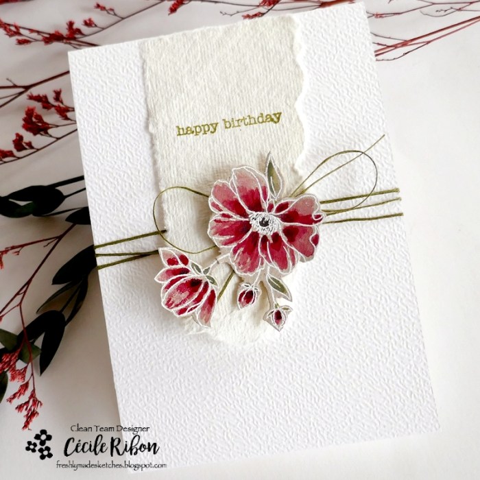 Le nouveau challenge Freshly Made Sketches est en ligne et, cette semaine, Karren propose un joli sketch permettant de jouer librement avec les superpositions. J’ai eu envie de l’interpréter assez fidèlement tout en l’allégeant et en donnant à ma carte un style un peu moins graphique.  Tous les produits m’ont été offerts par Penny Black voir sous les photos pour la liste des produits utilisés et les liens pour les retrouver en boutique