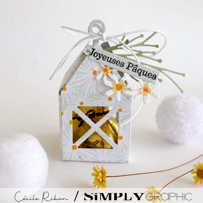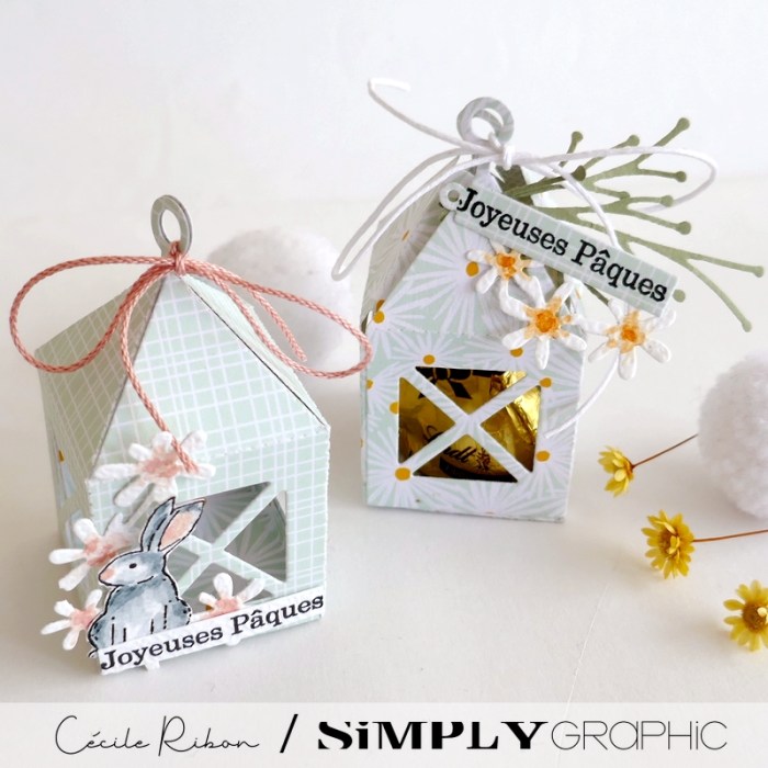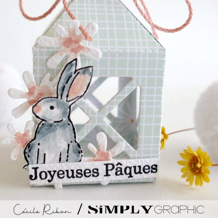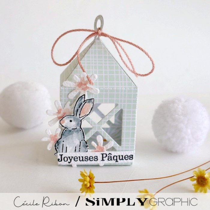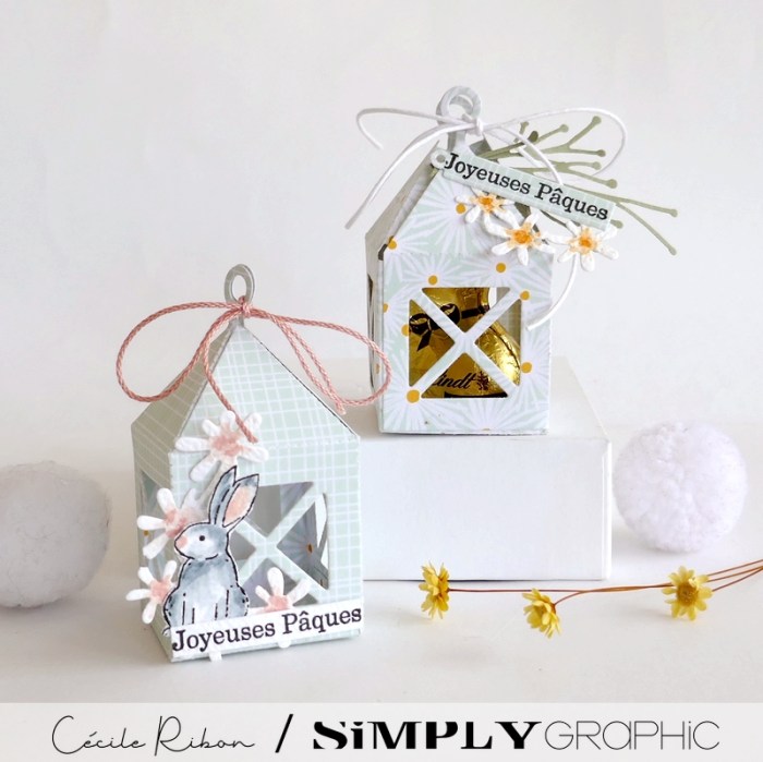 Vous souvenez vous des jolies lanternes de la collection de Noël de Simply Graphic ? Et bien, elles sont également parfaites pour réaliser des petites décos de Pâques. On peut y glisser des petits lapins ou des œufs en chocolat ou simplement réaliser d’adorables marque-places pour les tables de Pâques. En voici deux exemples aux couleurs fraîches et tendres.