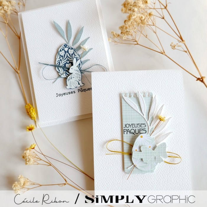 Pour l’occasion je partage ici mes dernières cartes de Pâques pour cette année 2025. Cette fois encore c’est un duo réalisé avec la mini collection spéciale Pâques de Simply Graphic et aussi quelques matrices de coupe de la jolie collection de printemps. Cette fois, j’ai eu envie de bleu et de couleurs fraîches.