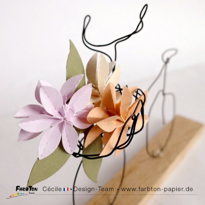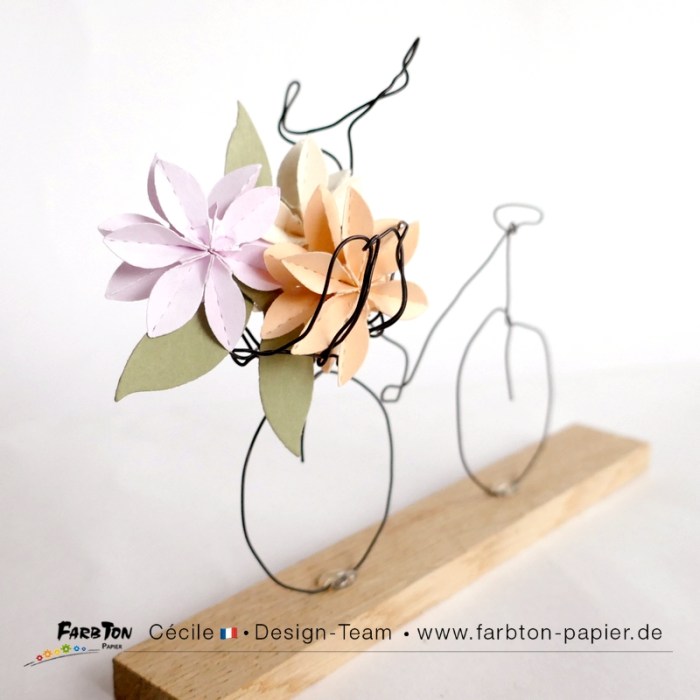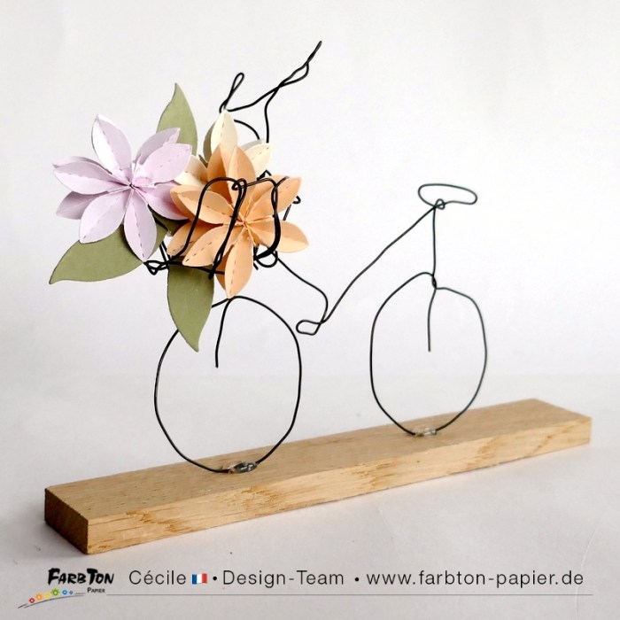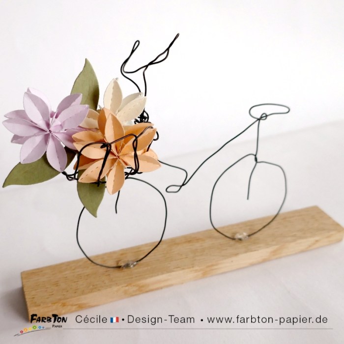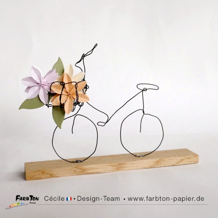 Une réflexion sur “DT Farbton Papier : Petit vélo en fil de fer et fleurs en papier.