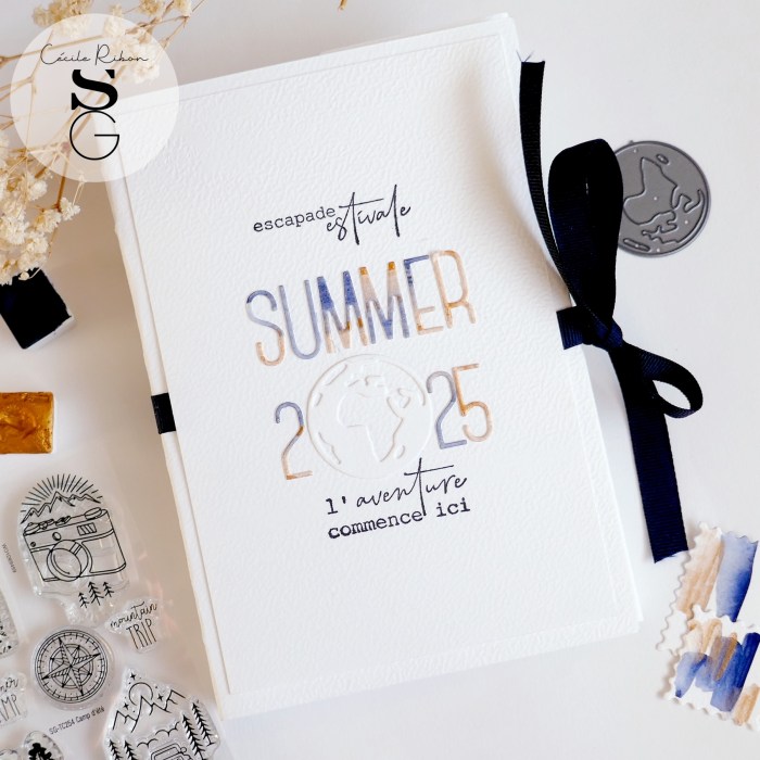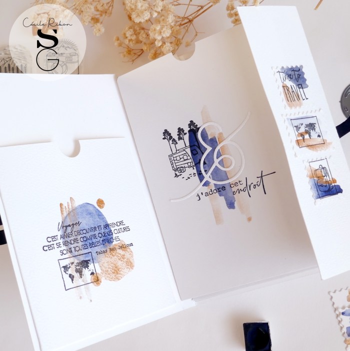 J’ai donc imaginé un « Compagnon de voyage » réalisé à 100% avec des produits Simply Graphic. Il s’agit d’une pochette avec 5 compartiments intérieurs (2 fixes et 3 mobiles) permettant de conserver des petits documents de voyage et de stocker les petits souvenirs papiers tels que les billets d’entrée ou les dépliants touristiques par exemple. Après les vacances, il peut aisément devenir la structure d’un mini-album pour les photos de vacances.