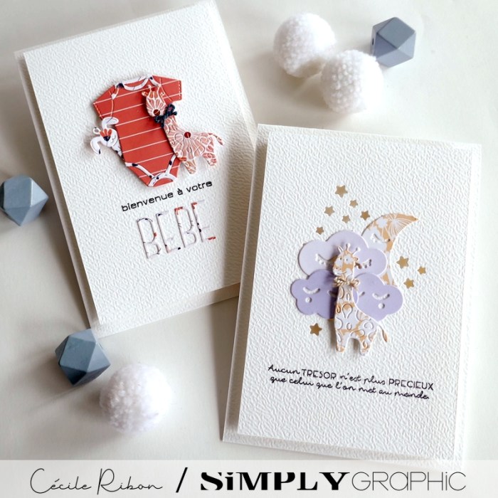 Après une carte de félicitations pour un mariage, un premier duo de cartes pour des naissances, voici un second duo de cartes de naissance qui, cette fois encore, ont été réalisées avec les si jolis imprimés  du nouveau set de papeterie créative.