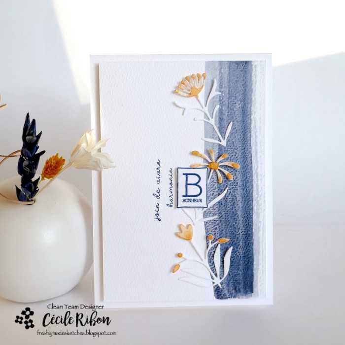 Happy Wednesday everyone! It’s time for a new Freshly Made Sketches challenge and Narelle has a very graphic sketch with multiple layers for you to play with. I chose to soften it sightly by using flowers instead of squares and kept my card pretty simple.