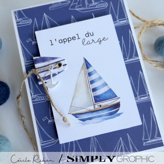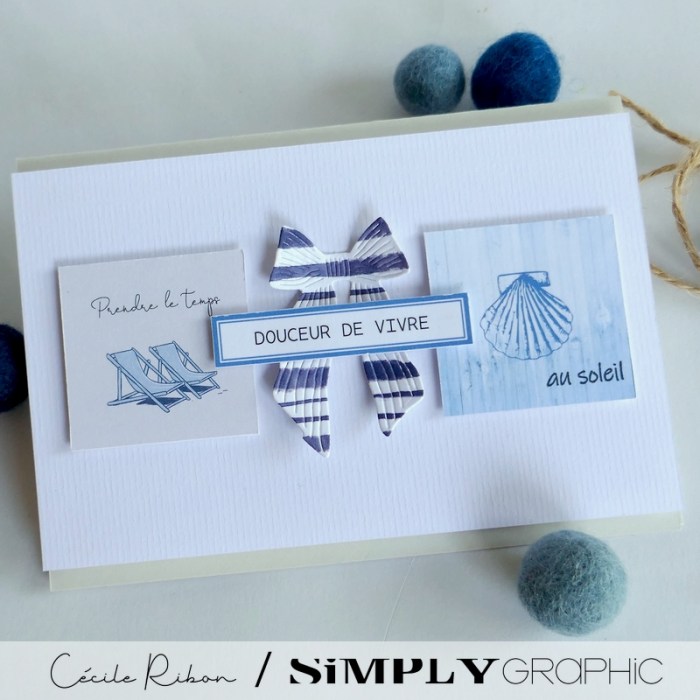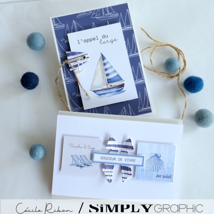 Un duo de cartes sur le thème « Bord de mer » mettant à l’honneur les jolis papiers imprimés et étiquettes à découper de le collection « Amalfi » (collection été 2025) de  Simply Graphic