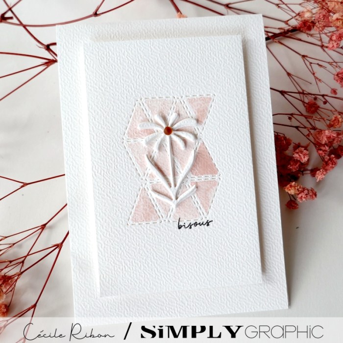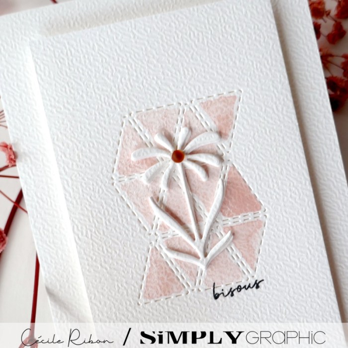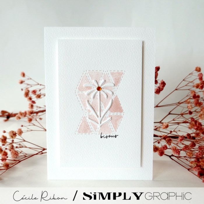 Cette fois, j’ai choisi la Colonne B : Rose – Fleur – Triangle et j’ai eu envie d’interpréter ces consignes avec une carte minimaliste.