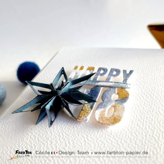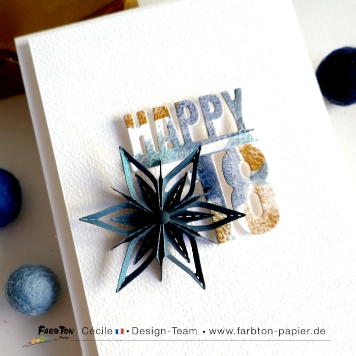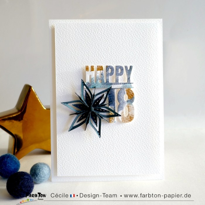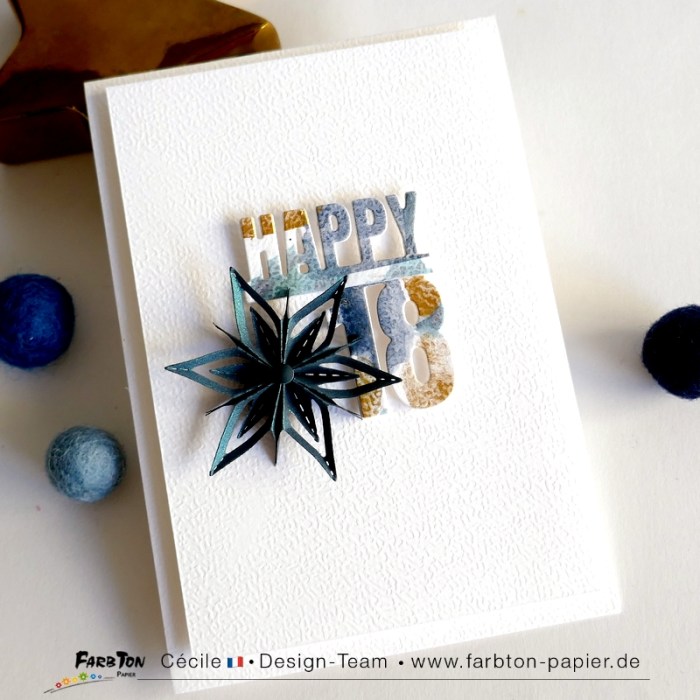 Je continue à jouer avec les magnifiques nouveautés Farbton Papier arrivées hier en boutique. Et c’est encore une carte d’anniversaire, mais pour fêter 18 bougies cette fois.
