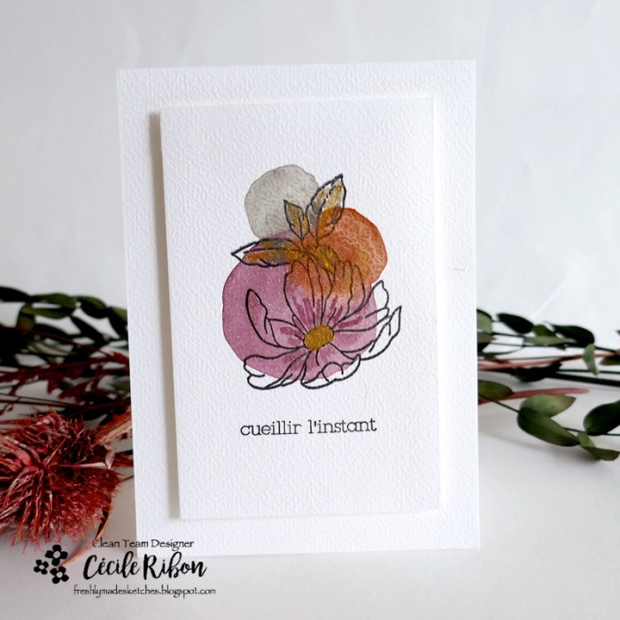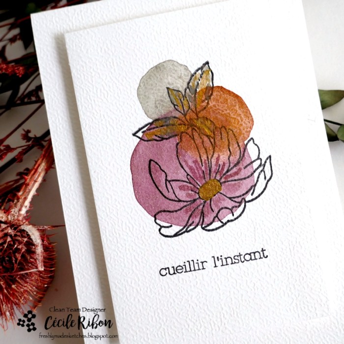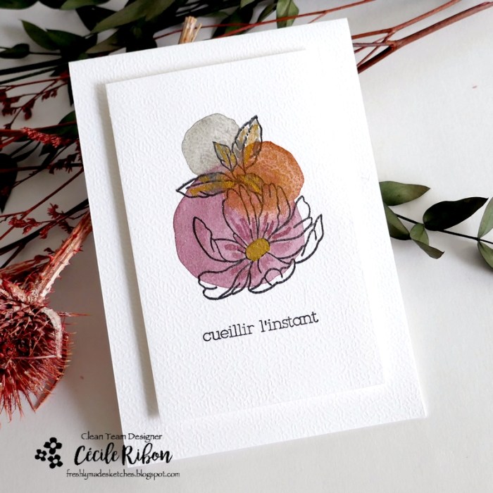 Happy Wednesday everyone! It’s time for a new Freshly Made Sketches challenge and it’s my turn to bring you this week’s sketch. I was obviously inspired by autumn slowly making its appearance. But remember that a sketch is just a general composition and each element can be interpreted in many ways. The only rule is to have fun. For my card, I chose the simplest way. I traced shapes with watercolor and then stamped over them with all the stamps I used coming from a single set.