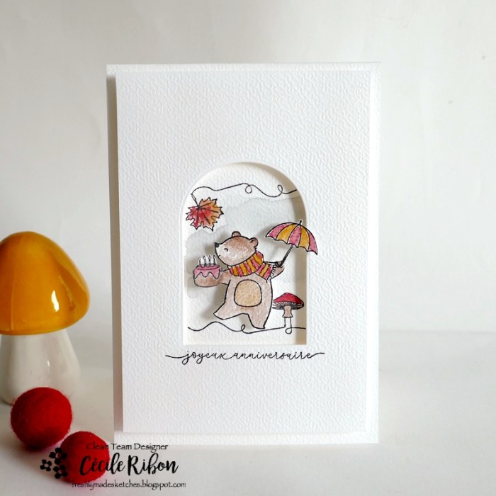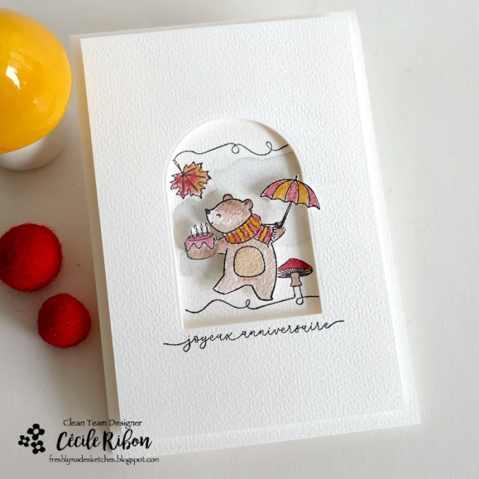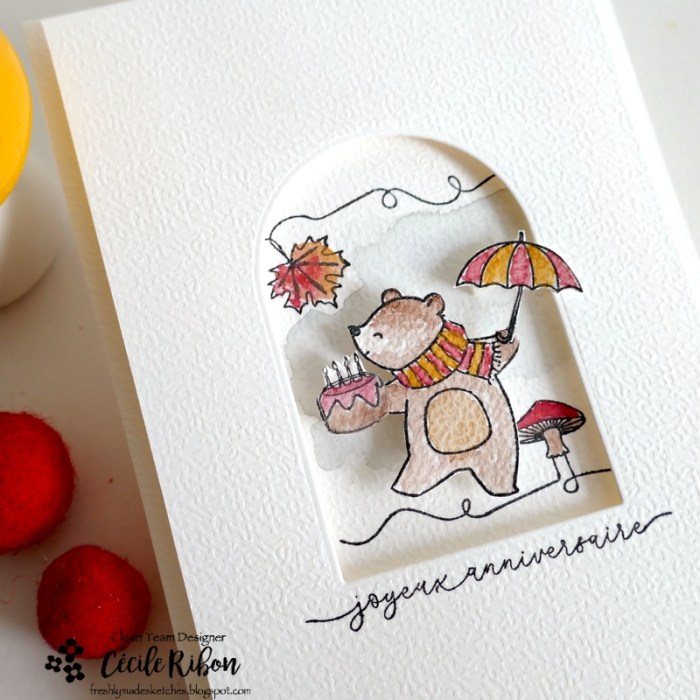 Cecile, I’m so happy to see this very cute and talented balancing bear! I say better late than to miss out on this sweet card all together!
