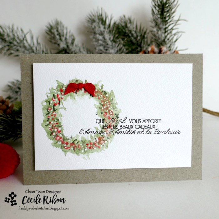 Happy Wednesday everyone! It’s time for a new Freshly Made Sketches challenge and Jen T has a very versatile clean sketch for you to play with. I opted for a very literal interpretation with a hand-painted watercolor Christmas wreath.