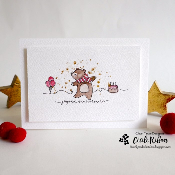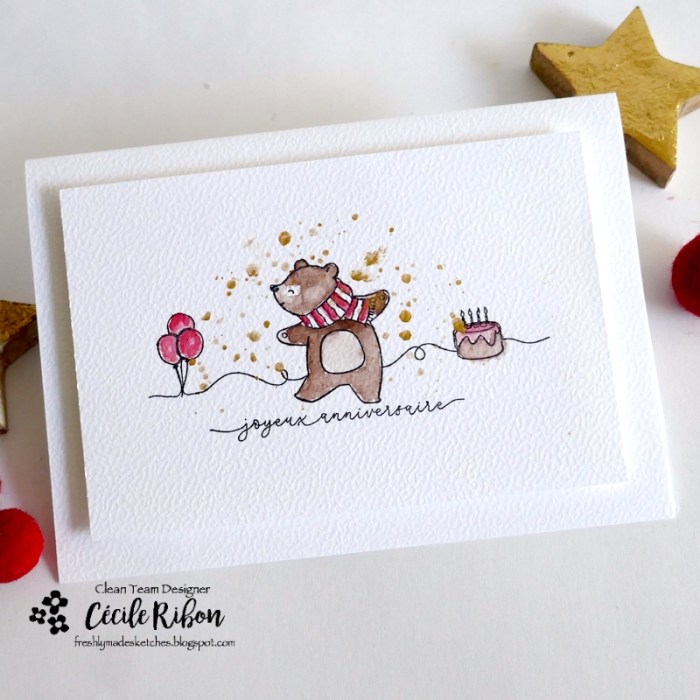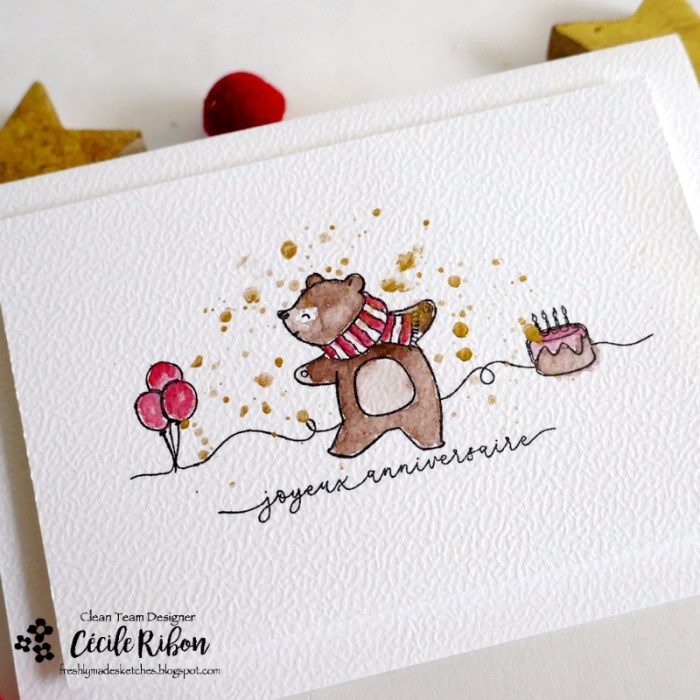 Le nouveau challenge Freshly Made Setches est en ligne et, c’est au tour de Linda de vous proposer le sketch de la semaine. Et celui qu’elle a imaginé spécialement pour vous offre de multiples possibilités d’interprétation . Il m’a inspiré une carte d’anniversaire enfantine avec cet adorable ours (Une planche de la capsule d’automne de Simply Graphic)