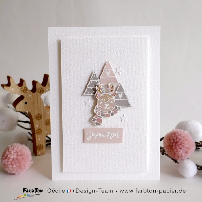 Et oui, encore une carte de Noël avec les mêmes jolis tampons Farbton Papier. Je ne m’en lasse pas et, en jouant sur les combinaisons de motifs et les couleurs, les possibilités sont quasi infinies.
