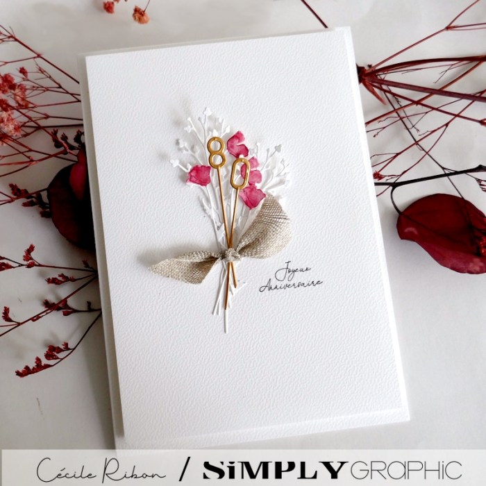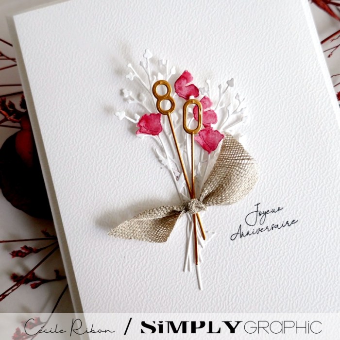 Je partage aujourd’hui une carte d’anniversaire réalisée pour les 80 ans d’une amie. 80 ans, cela mérite bien un bouquet qui ne fanera jamais!