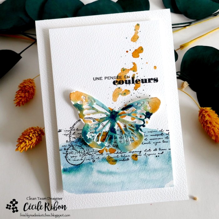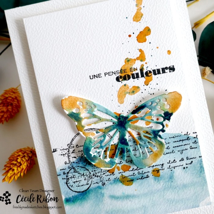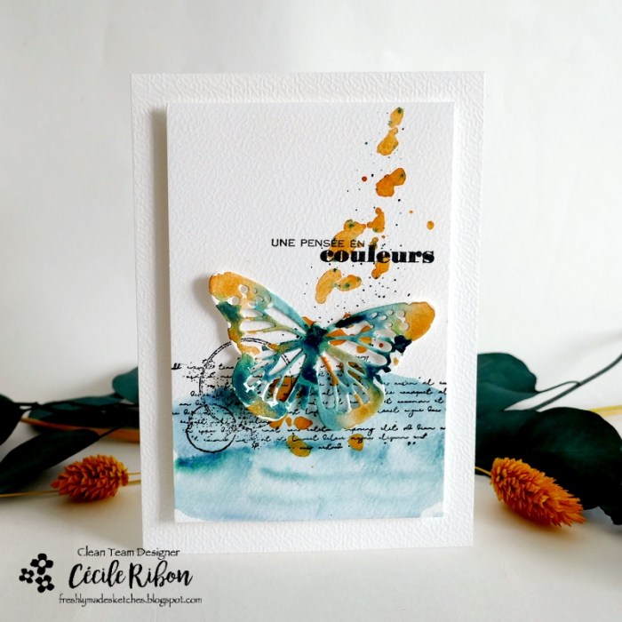 Bon mercredi à tous, c’est le jour du nouveau challenge Freshly Made Setches et, cette semaine, Verena vous propose un joli sketch très clean à interpréter comme il vous plaira. J’ai eu envie de sortir mes aquarelles et ai opté pour une carte colorée, plus freestyle que clean.
