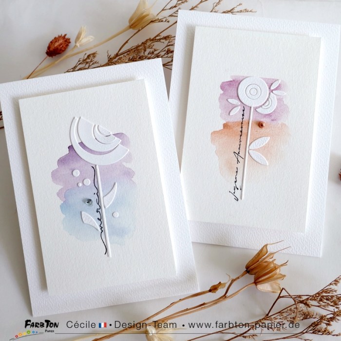 Pour vous les présenter, J’ai choisi de réaliser deux cartes, l’une pour un anniversaire et l’autre pour dire merci.