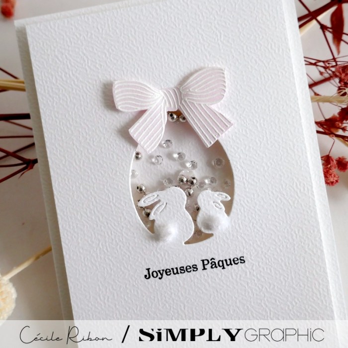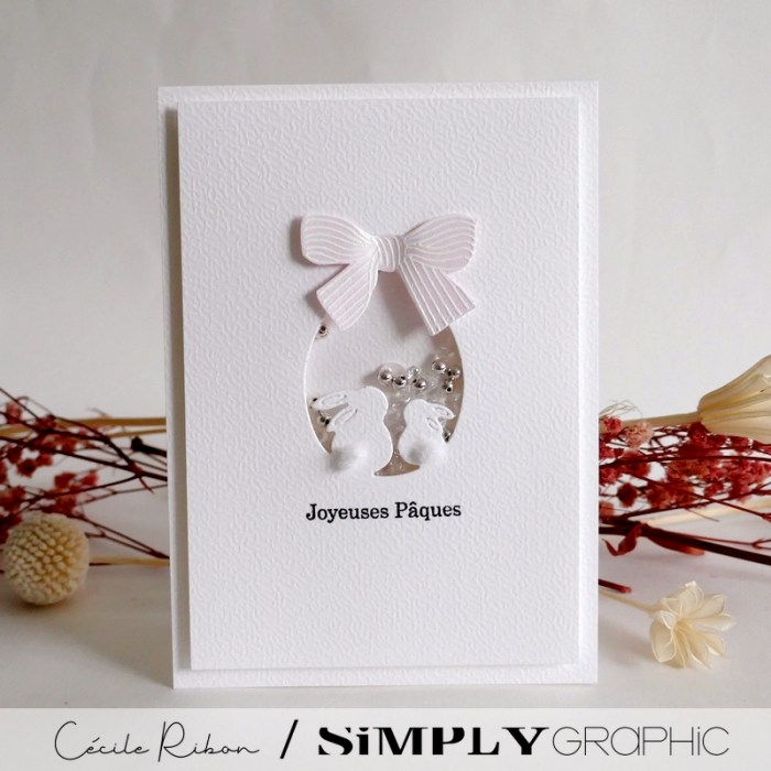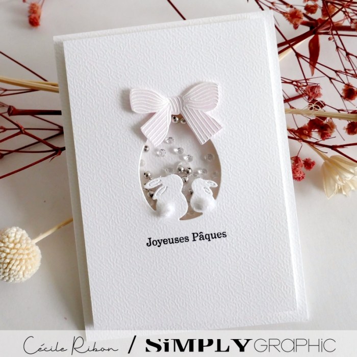 Une petite carte en toute simplicité pour accompagner des lapins de Pâques en chocolat. Tous les produits utilisés sont de Simply Graphic, un mélange de la capsule « Love » sortie en février et de la de Pâques de l’année dernière. Vous en trouverez la liste sous les photos.