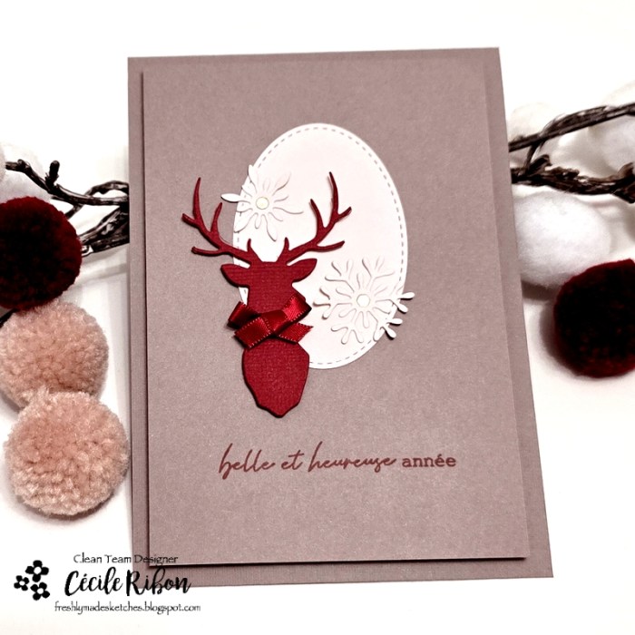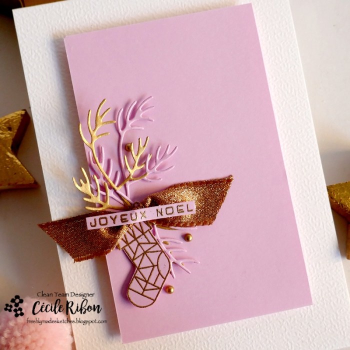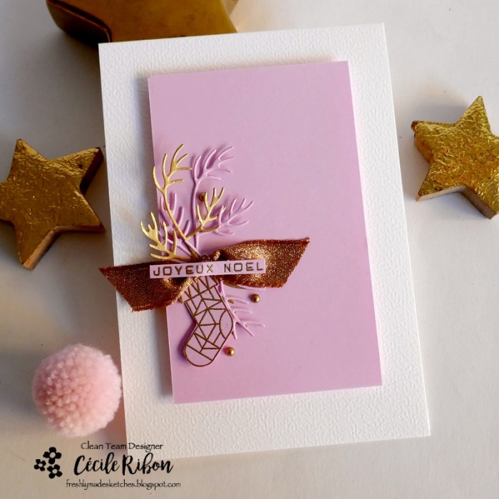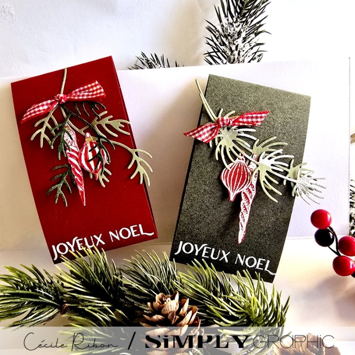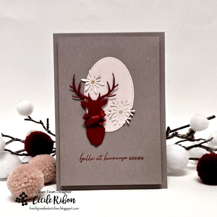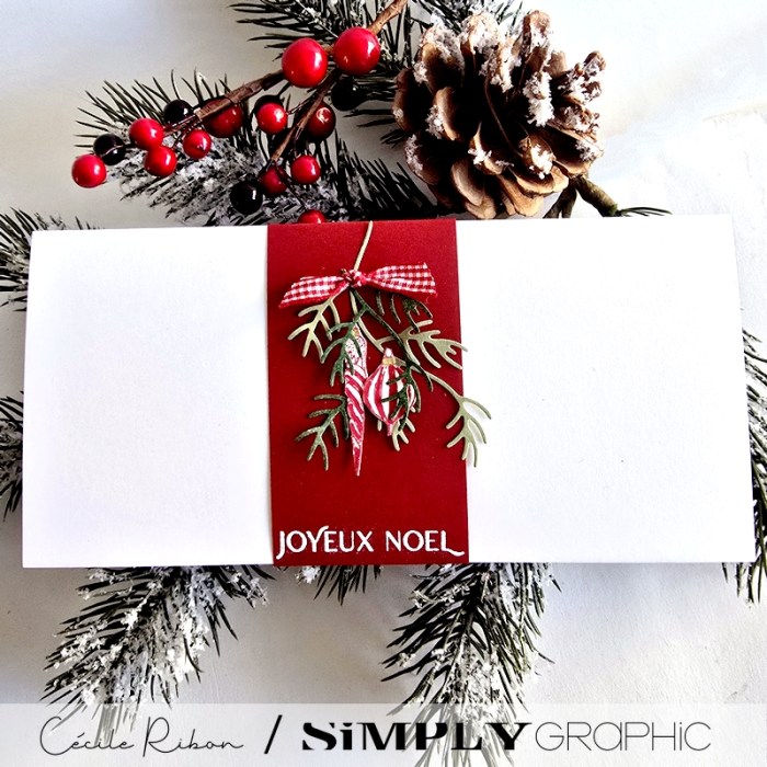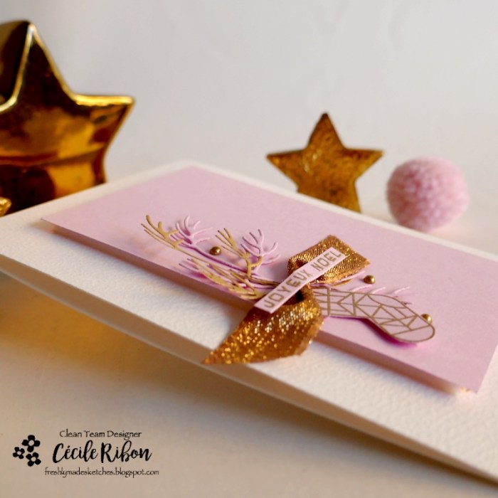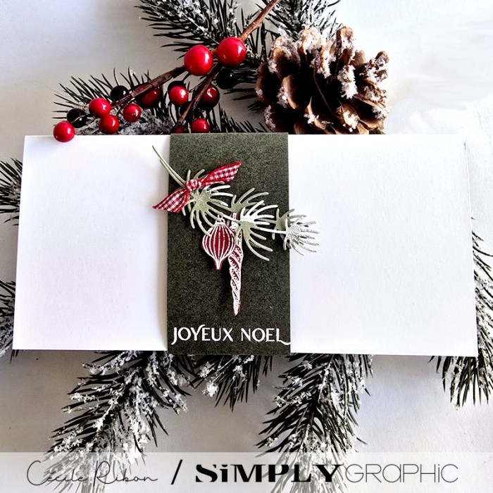 Voici ma carte pour illustrer ce combo. La couronne est réalisée avec l’une des matrices de coupe du set « branches de pin 3 ». J’ai recoupé toutes les découpes pour ne conserver que les pointes et les disposer en cercle.