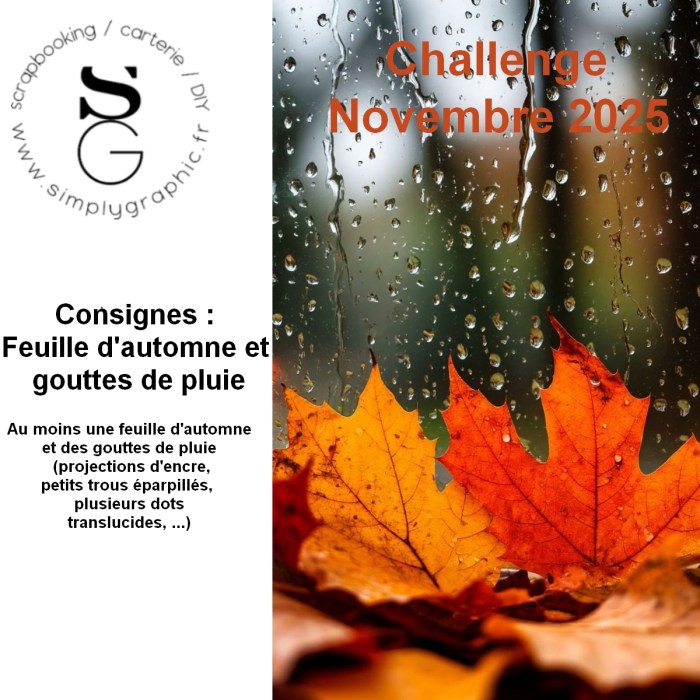 Pour jouer avec nous et prendre connaissance des modalités de participation, rendez-vous dans l’album du challenge (ICI) sur le Groupe Simply Graphic (groupe Facebook). Si vous n’êtes pas déjà membre du groupe, vous pouvez cliquer sur le lien ci dessus et demander à nous rejoindre.
