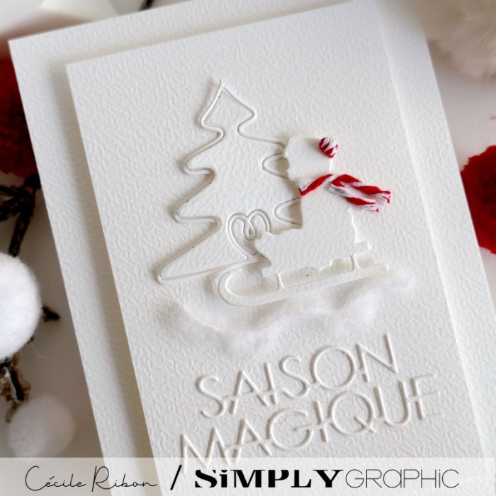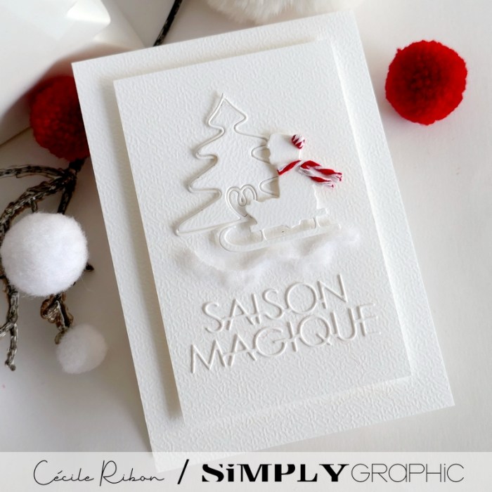 Et pour ma carte j’ai opté pour la sobriété … Une carte ou la blancheur domine pour évoquer les frimas de l’hiver et, bien sûr, cette belle écharpe.
